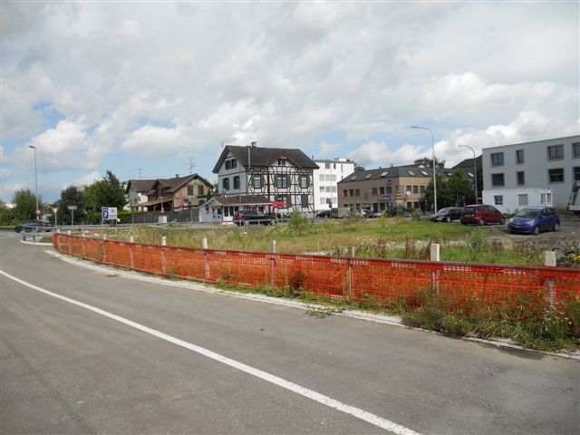 Auf einer grünen Wiese, die Parzelle war umgeben von der SBB (Bahnhof Kreuzlingen), der Kantonsstrasse, einer Fussgängerunterführung einem Neubau Hochhaus und der Venenklinik.