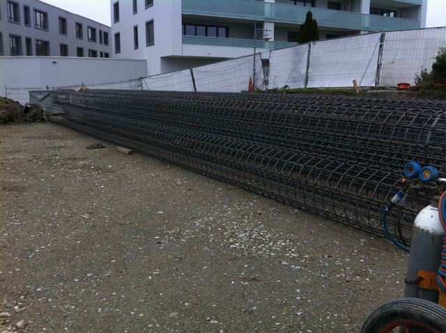 - Zeile3 Beschreibung: Zur Sicherung des Nachbargrundstückes musste eine Baumeisterrühlwand erstellt werden. Später wurde auch bei starkem Schneetreiben eifrig gearbeitet.