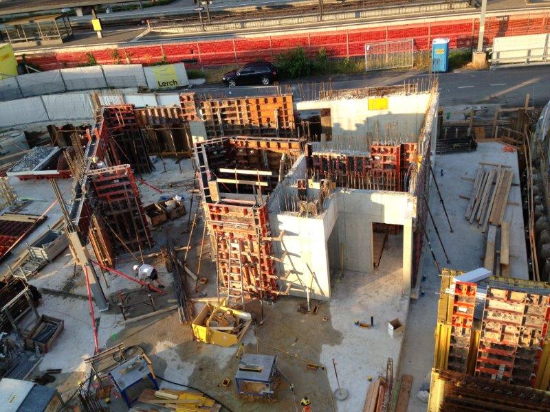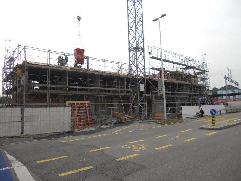 Das Objekt wurde komplett eingerüstet. Die alte Fassade abgebrochen und diverse Verbereitungsmassnahmen für die Aufstockung getroffen.