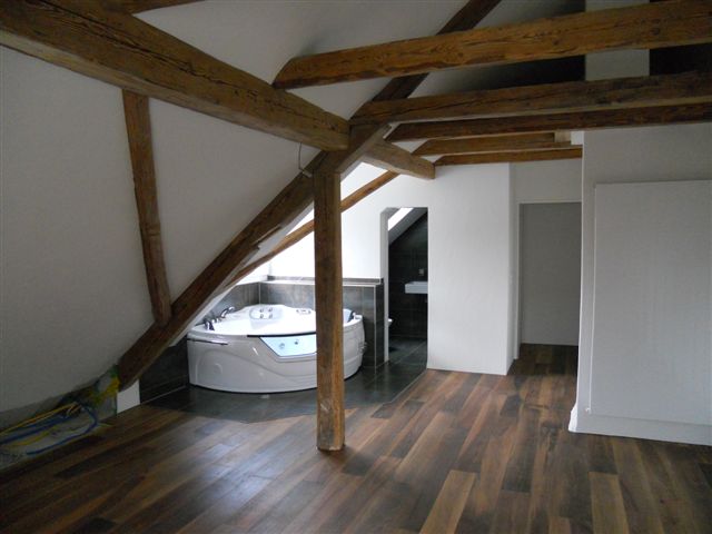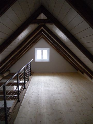 Der marode Dachstock des Bauernhaus ist nicht mehr zu Vergleichen mit dem "Schmuckstück" nach dem Umbau. Herrlich wie die Sichtbalken nun wieder zum Tragen kommen und dem Raum einen heimeligen Touch vermitteln.