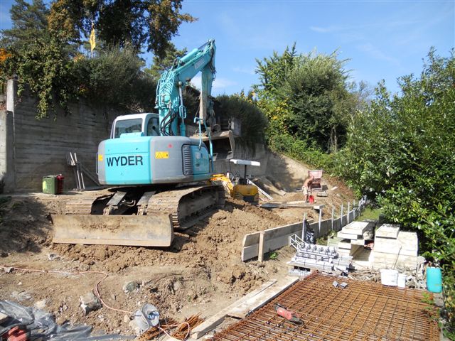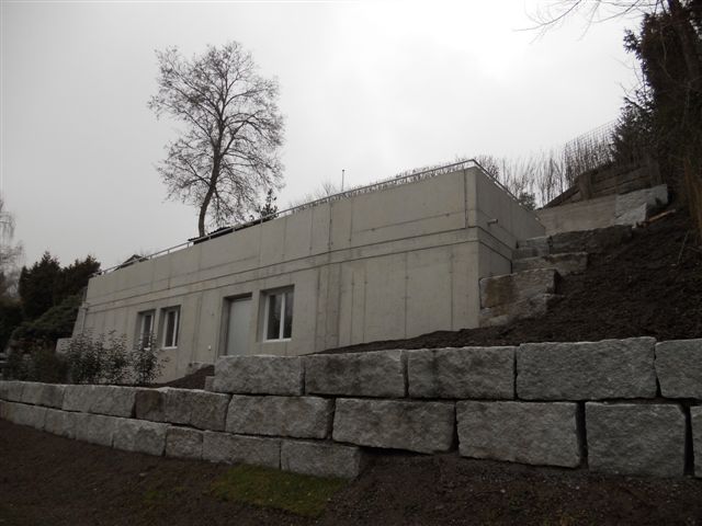 Die Bauherrschaft hegte den Wunsch das Grundstück besser auszunutzen. Es wurde beschlossen eine Garage sowie einen Abstellraum zu erstellen. Damit dies realisiert werden konnte, musste die seit 1975 bestehende Stützmauer unterfangen und gesichert werden.