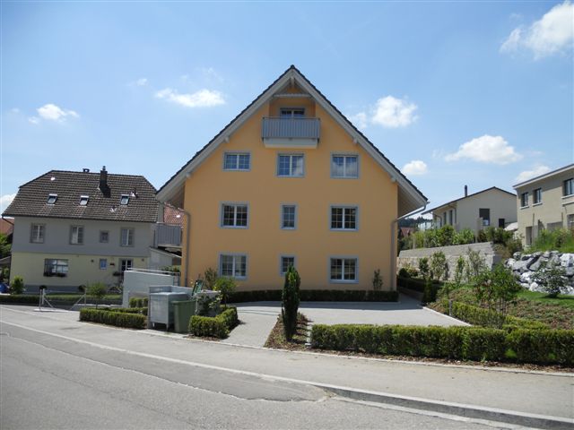 Für die Bauherrschaft erstellten wir auf einer "brachliegenden" Baulandparzelle ein Mehrfamilienhaus mit 6 Wohneinheiten. Es entstanden vier 3 1/2 Zimmerwohnungen und zwei 4 1/2 Zimmerwohnungen. Die Wohnfläche der Einheiten variiert zwischen 100-120m2. Die Liegenschaftenbesitzer beachbsichtigten die Wohneinheiten zu vermieten. Das Gebäude wurde mit einer Erdsondenheizung und einer Komfortlüftung ausgestattet und erreichte somit Minergiestandard.