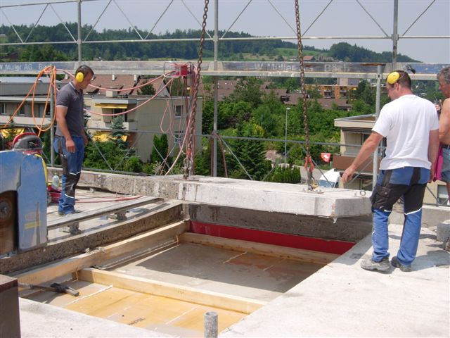 Auf der linken Seite sieht man die Treppenhausöffnung. Auf der rechten Seite der Terrassenbereich der neu erstellten Attikawohung.