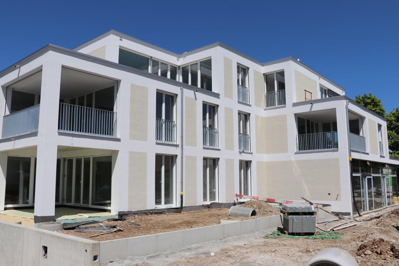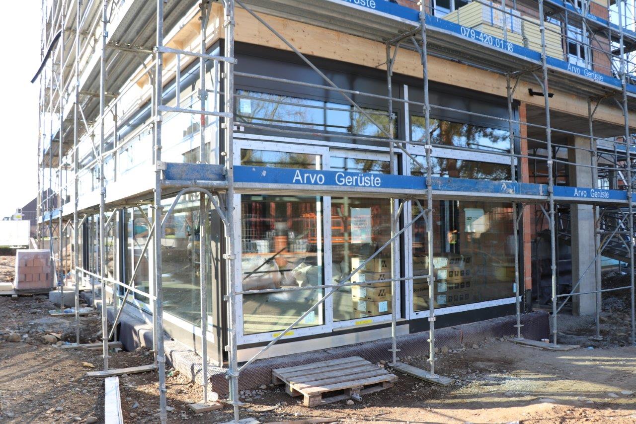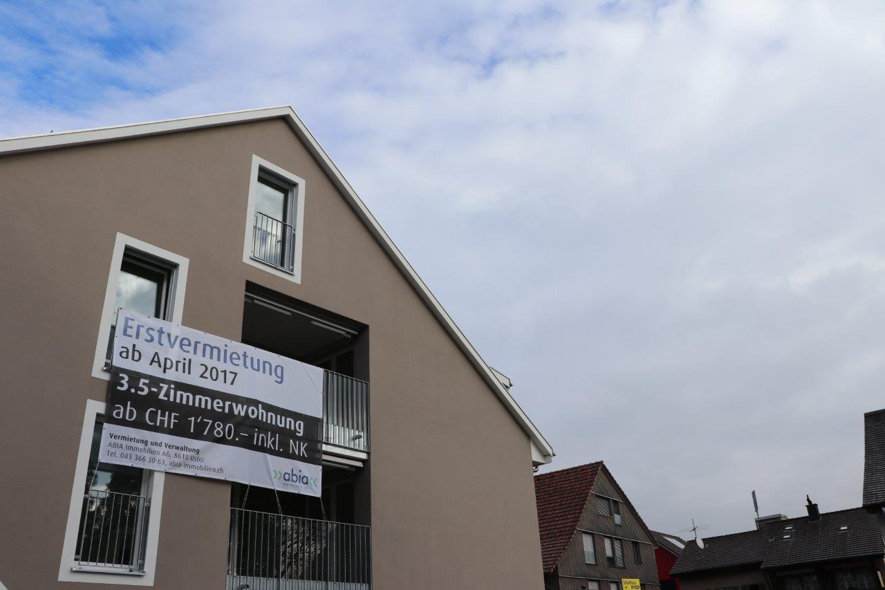 Wo früher eine grüne Wiese war, entstand ein Gewerbebau mit Wohnungen.