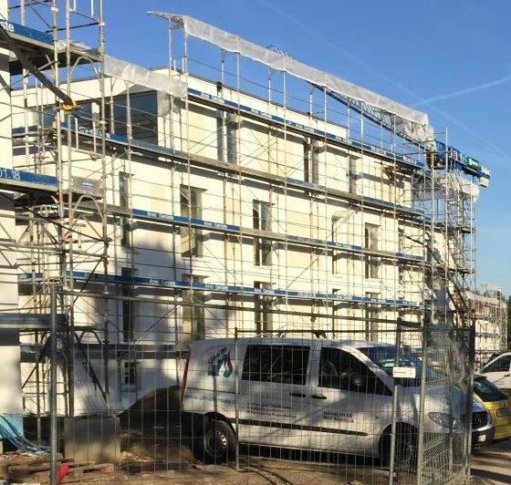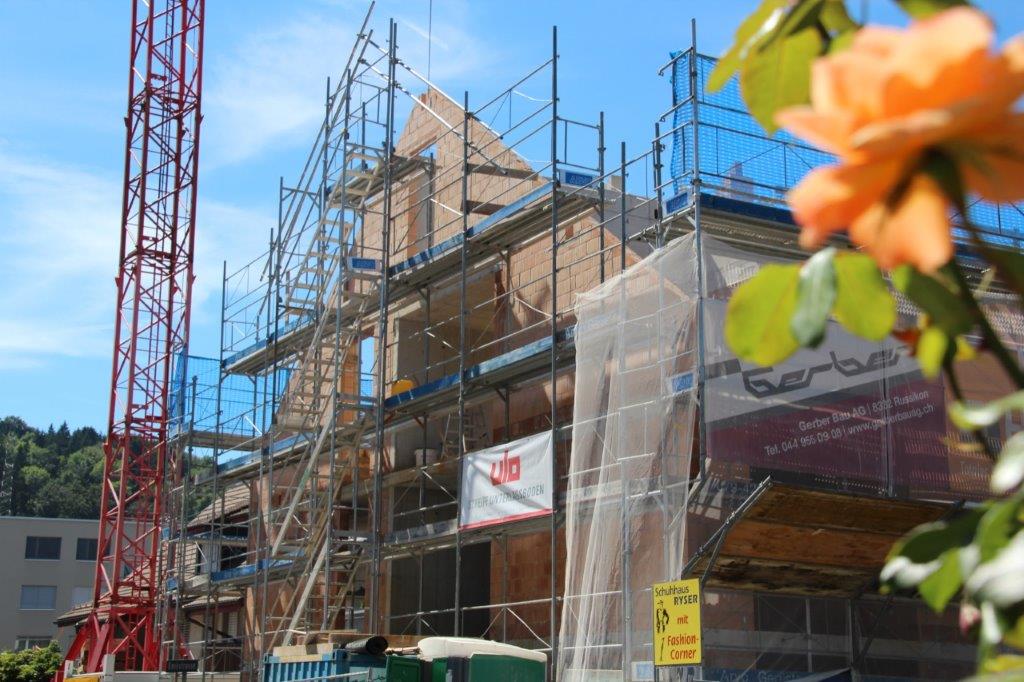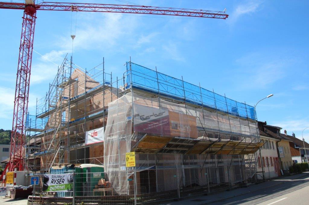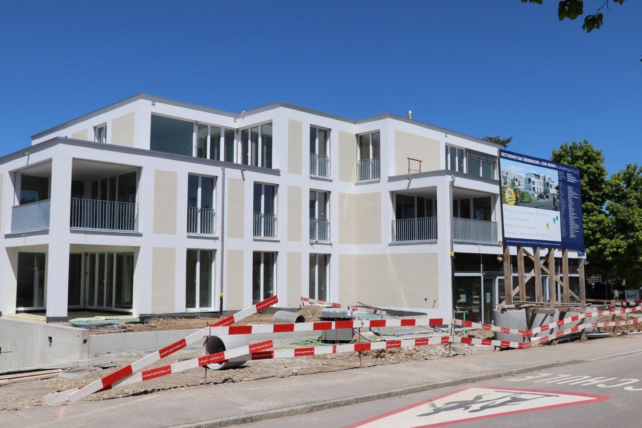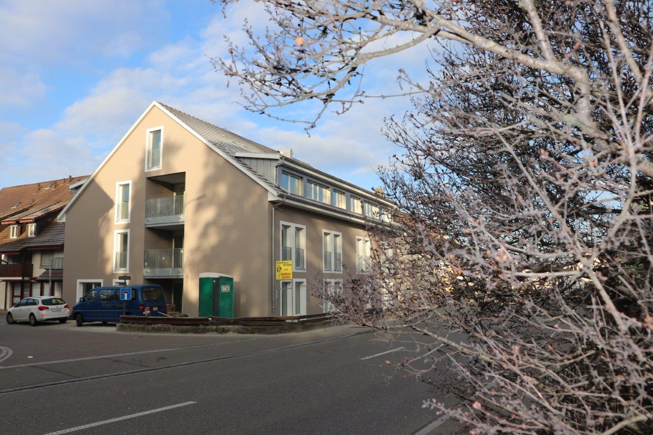 Wo früher eine grüne Wiese war, entstand ein Gewerbebau mit Wohnungen.