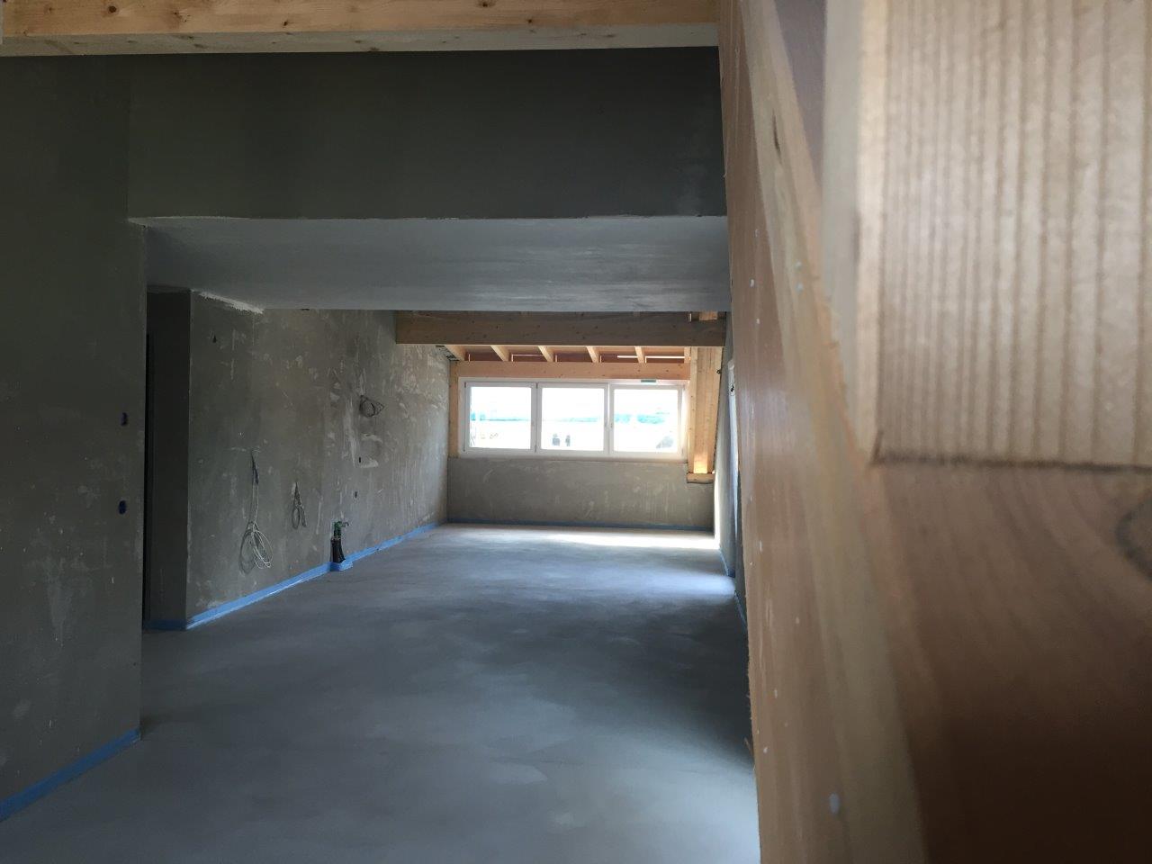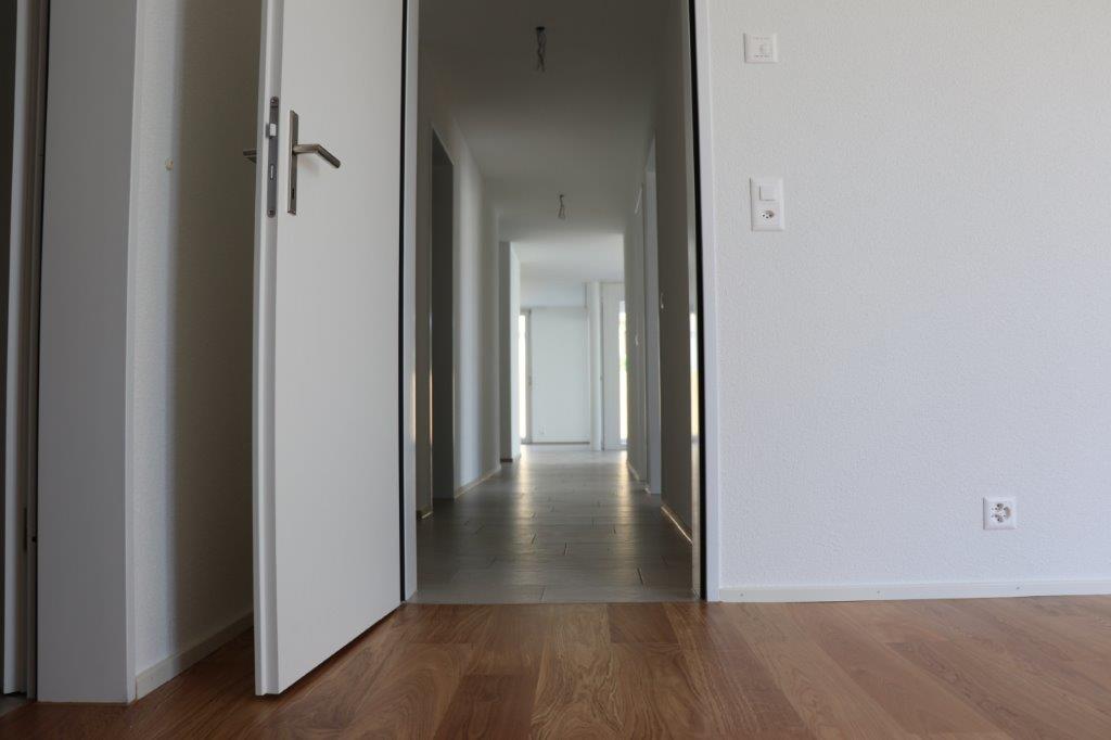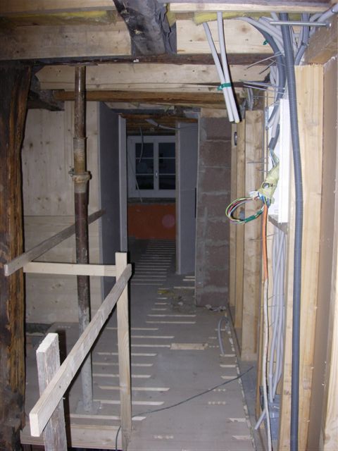 - Zeile5 Beschreibung: So sah der Blick vom Korridor in Richtung Badzimmer aus. Während der Bauphase und nach Fertigstellung.