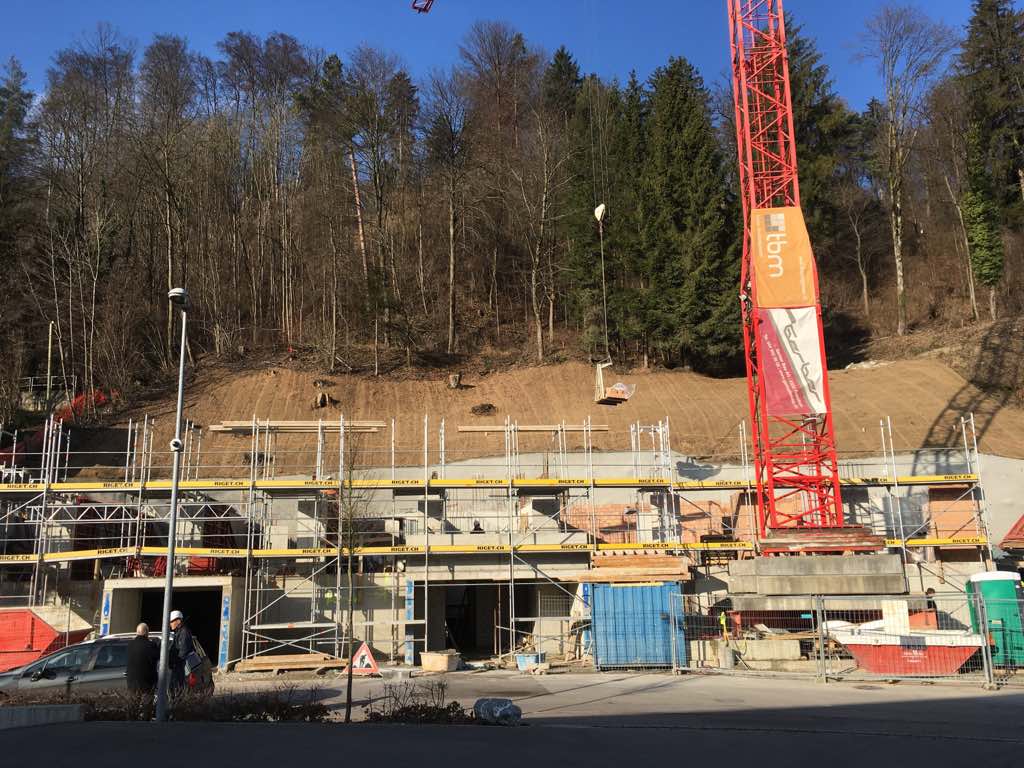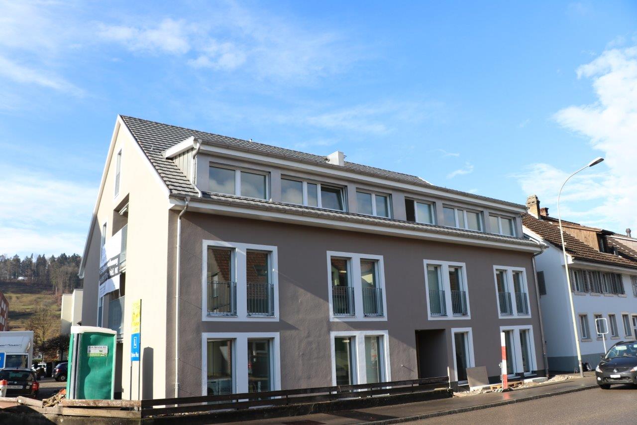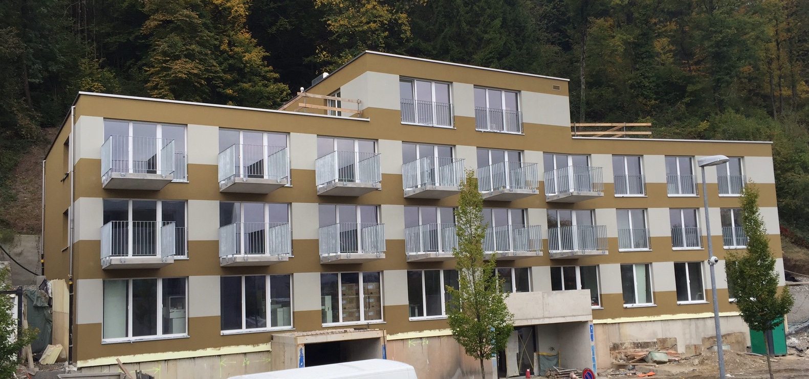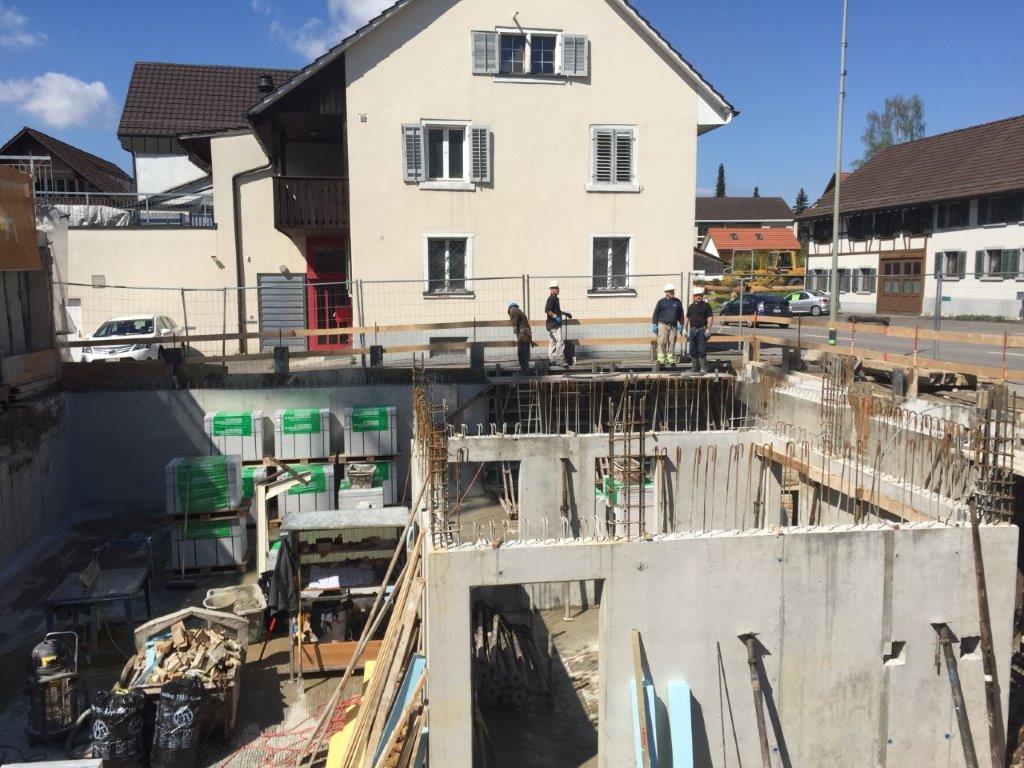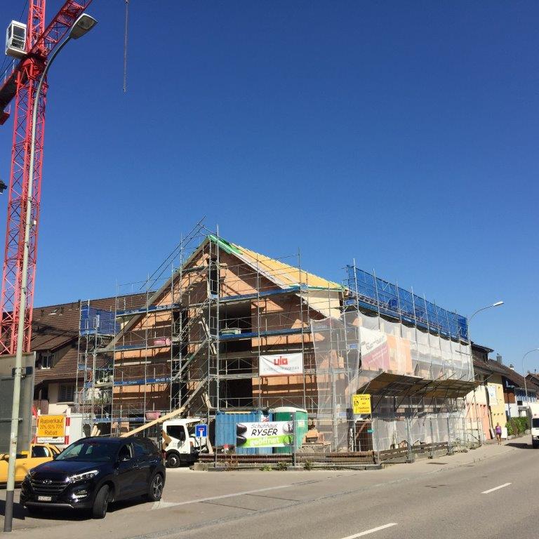 Abbruch der beiden Einfamilienhäuser. Es entsteht ein Neubau mit 19 Kleinwohnungen und 3 grösseren 4 1/2 - 5 1/2 Zimmerwohnungen.