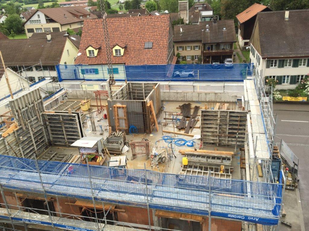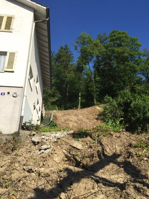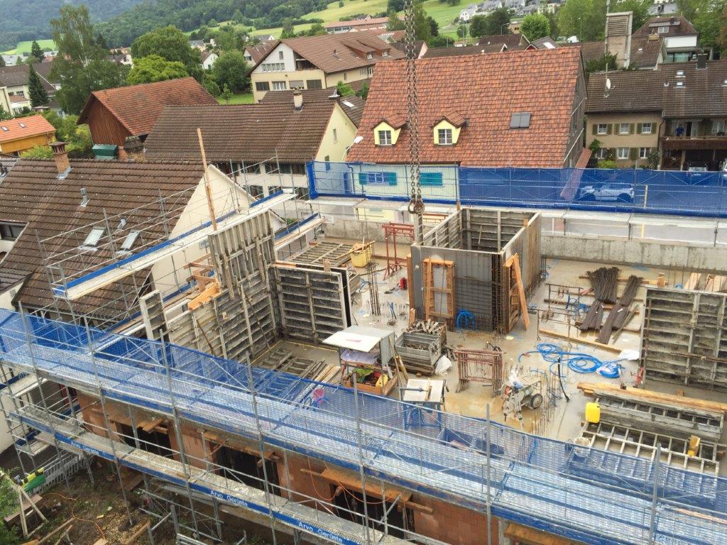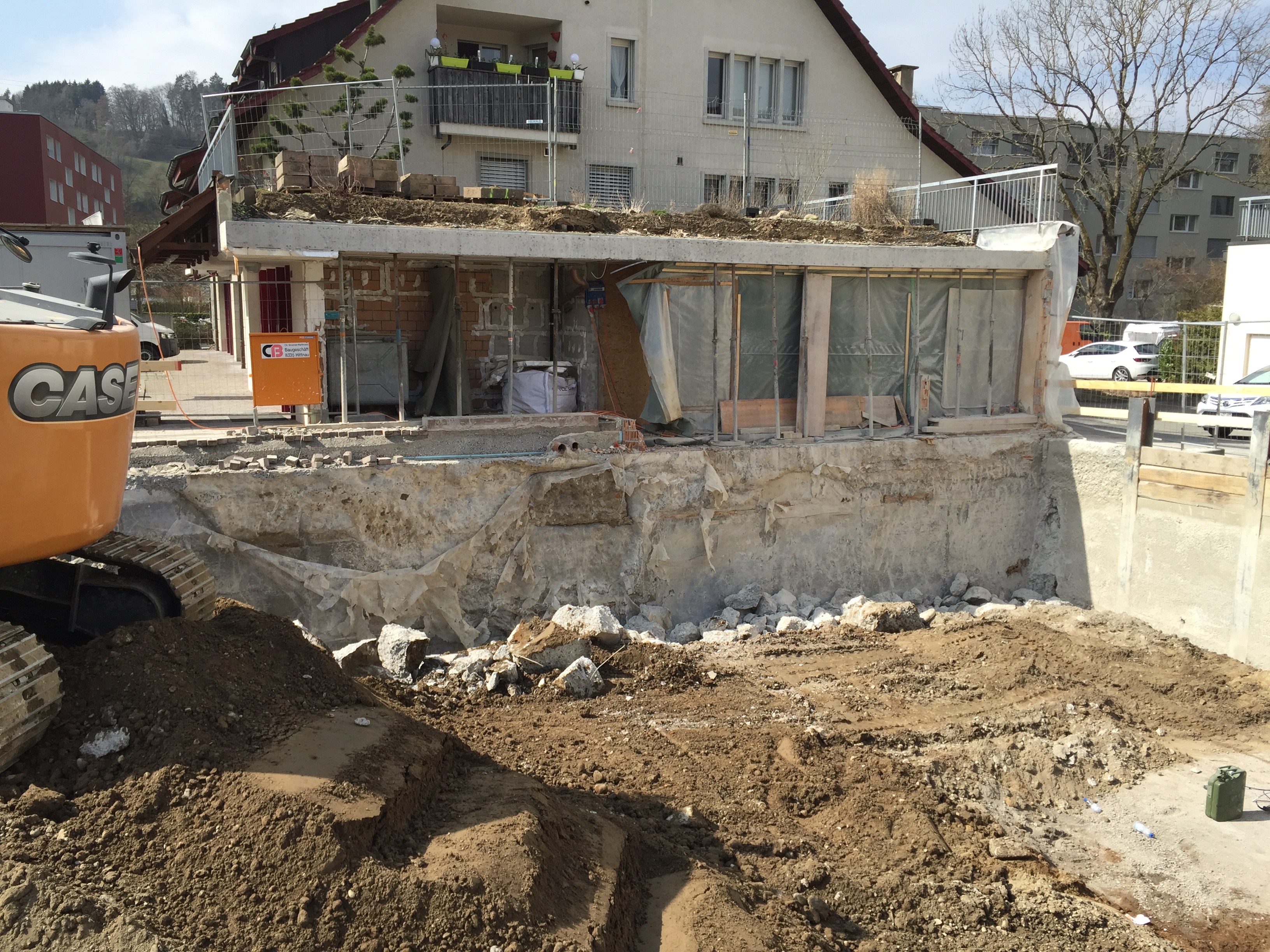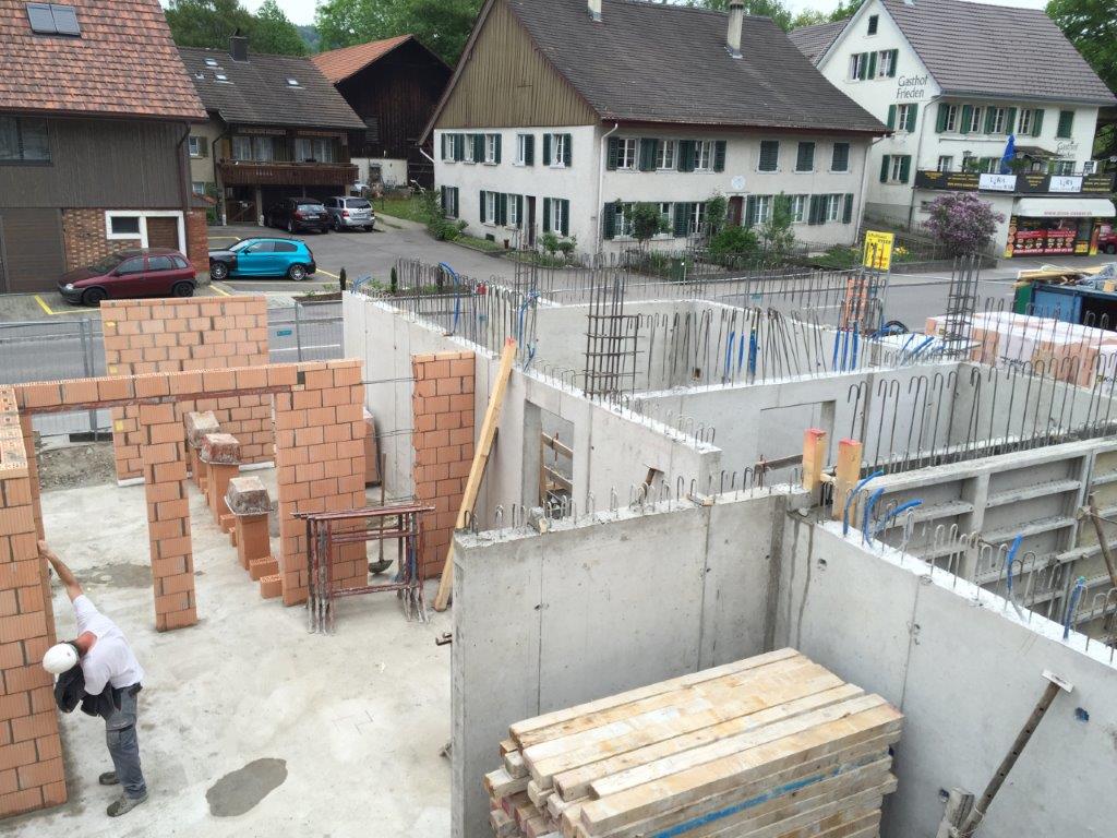Die bestehenden Bauten wurden abgerissen und neu aufgebaut. Im neuen MFH enstanden 4 Wohnungen (3 Mal 3 1/2 und 1 Mal 2 1/2 Zimmerwohungen). Im neu zu Wohnzwecken umfunktionierten Schopf wurde ein schmuckes "Stöckli" (2 1/2 Zimmerwohnung) errichtet.