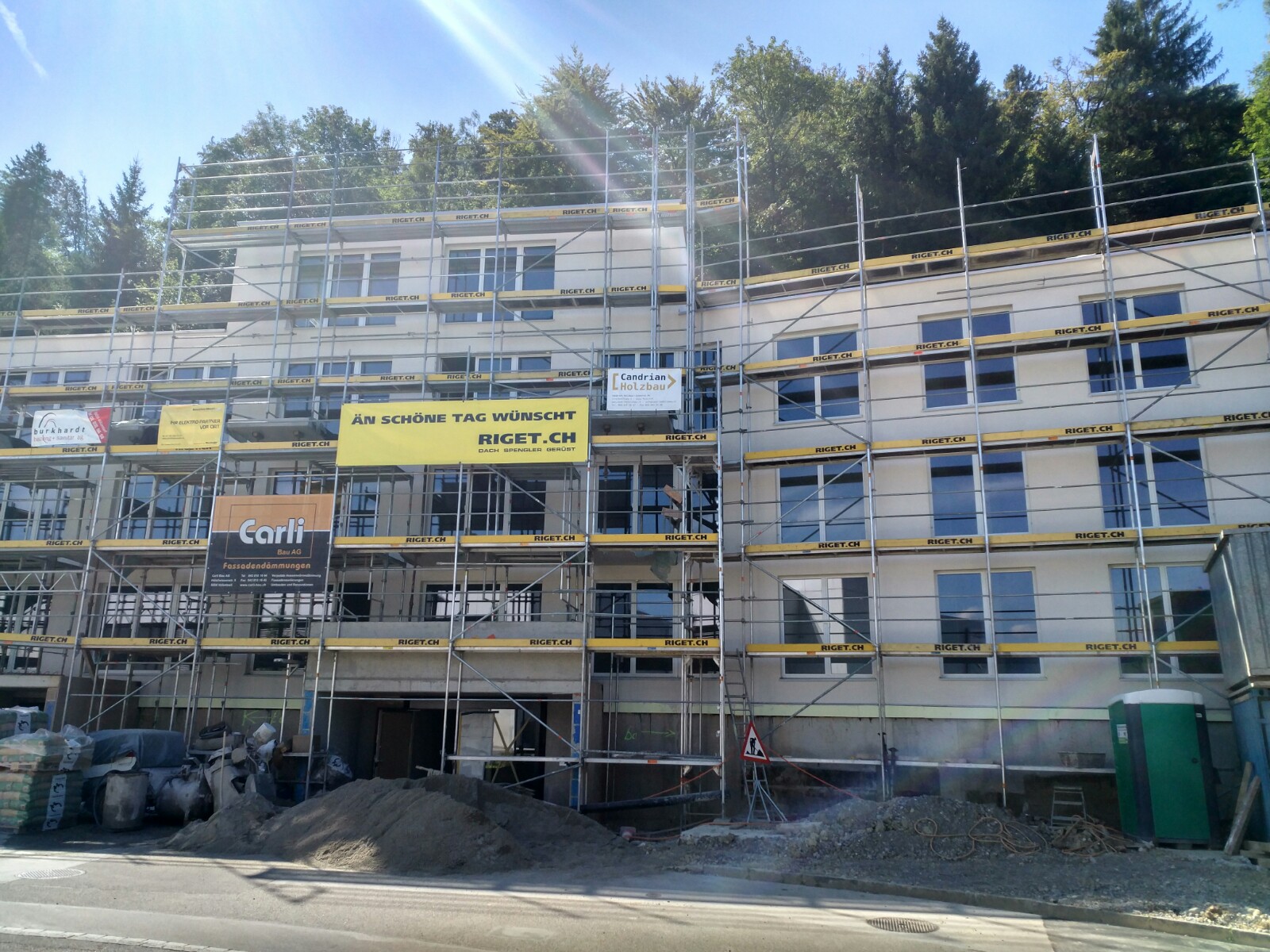 Die Bauzeit für die komplette Sanierung, betrug nur 2 Monate. Alle Wohnungen blieben während der Bauzeit bewohnbar. Der Eigentümerschaft stand ein WC-und Duschprovisorium zur Verfügung.