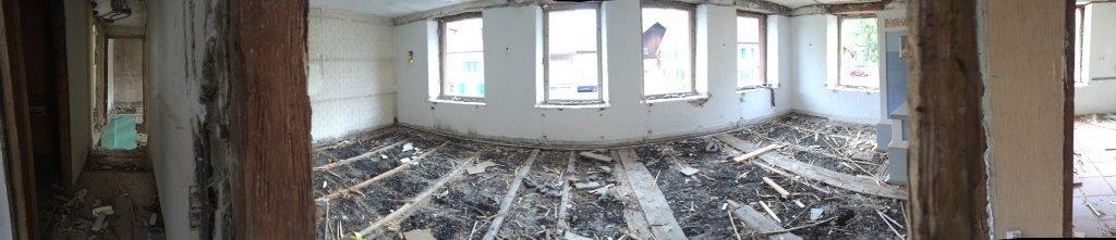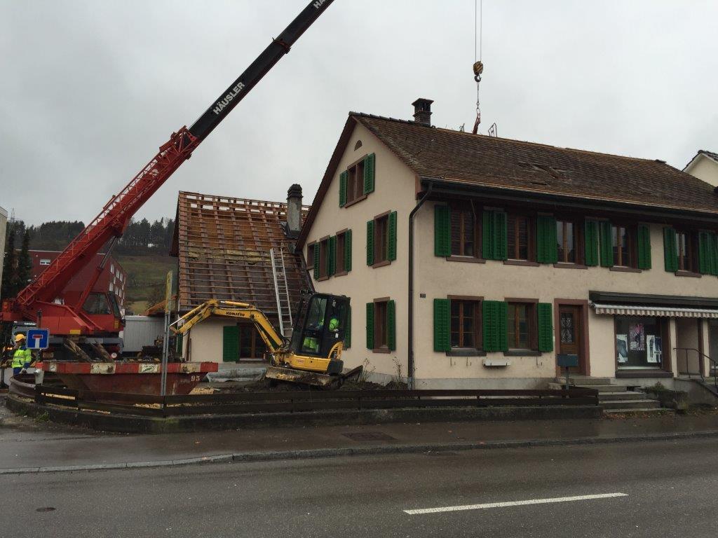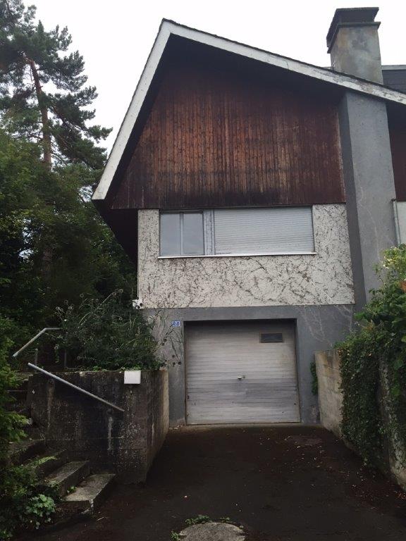 - Zeile1 Beschreibung: So präsentierte sich die Liegenschaft an der Wetzikerstrasse 21 in Oberhittnau vor dem Umbau. Die Fassaden und der Dachstock blieben bestehen, Innen wurde das Objekt vollständig leer geräumt und ausgehölt.