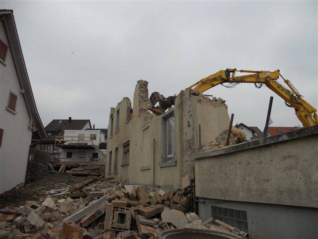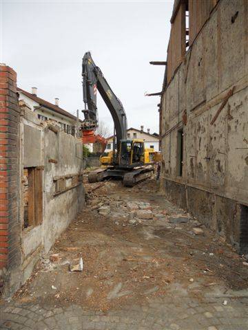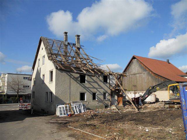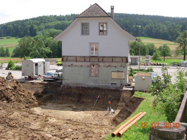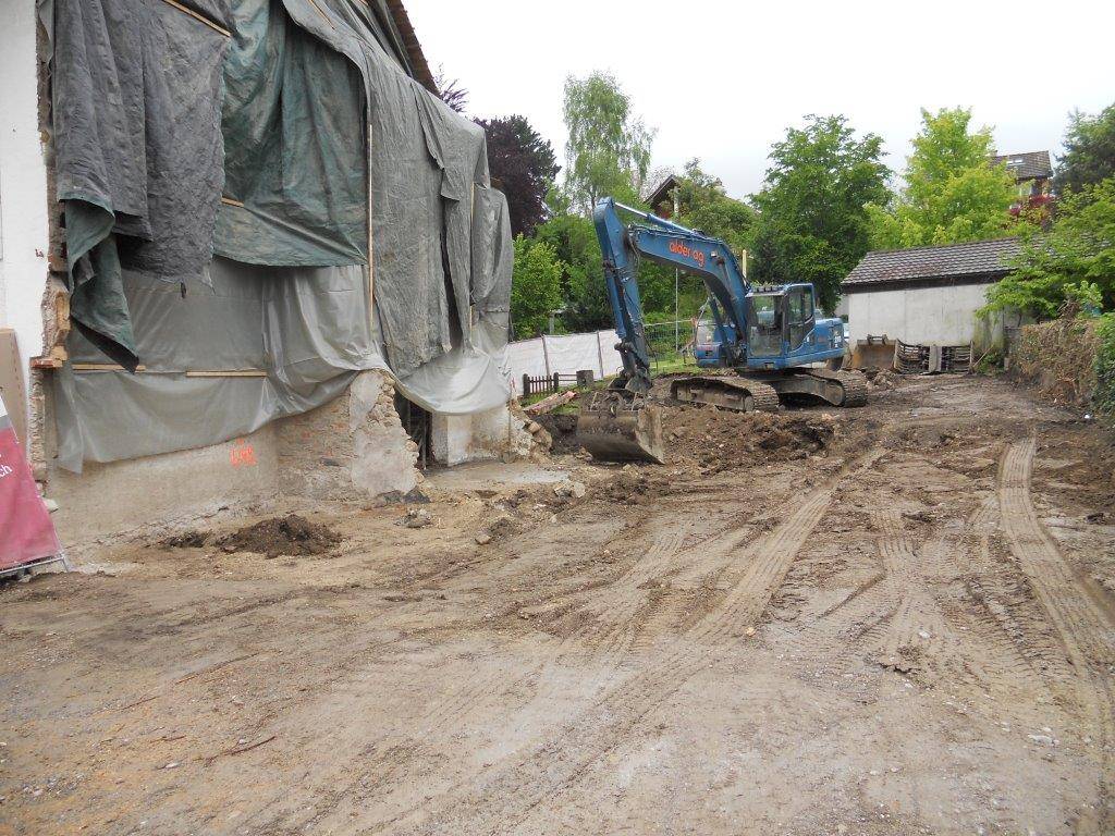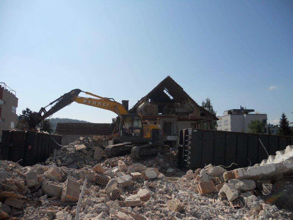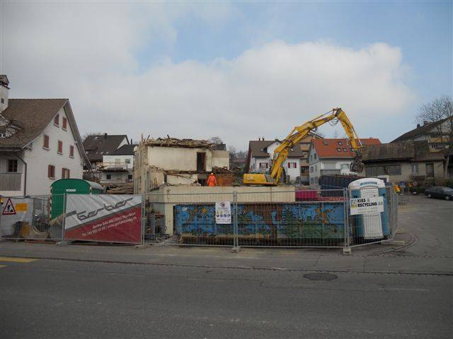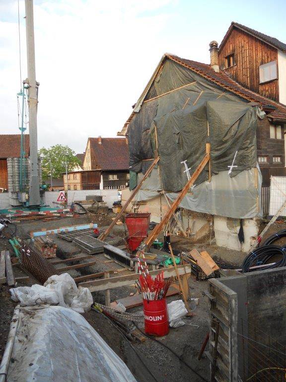 - Zeile2 Beschreibung: Muldenweise wurde Altholz, Alteisen und Bauschutt ausgebaut und abgeführt. Das Gebäude wurde durch den Zimmermann abgestützt respektive neu aufgestellt. Somit konnte das komplette Gebäude ausgehölt werden.
