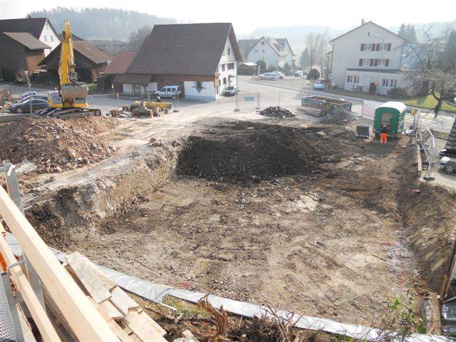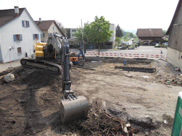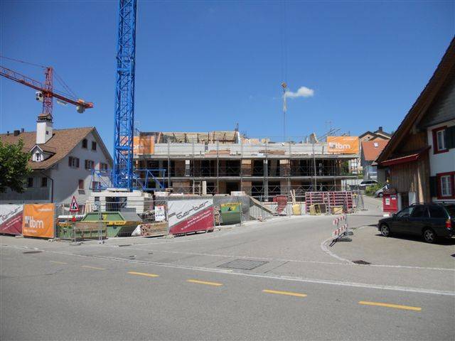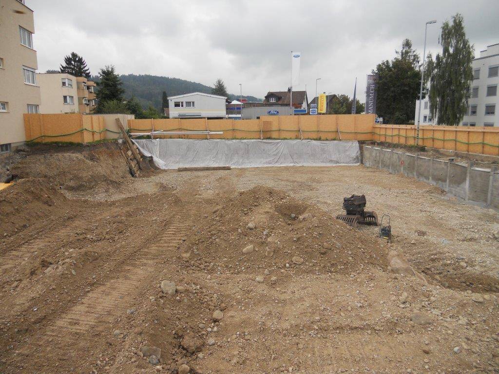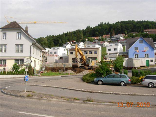 - Zeile1 Beschreibung: So präsentierte sich die zu überbauende Baulandparzelle im Mai 2010. 14 Monate später stand das moderne Mehrfamilienhaus.