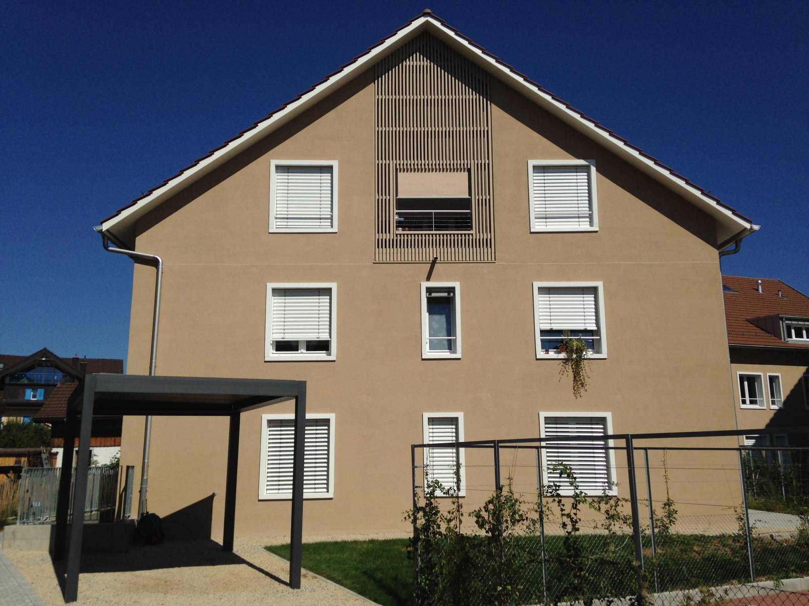 Für die Bauherrschaft erstellten wir auf einer "brachliegenden" Baulandparzelle ein Mehrfamilienhaus mit 6 Wohneinheiten. Es entstanden vier 3 1/2 Zimmerwohnungen und zwei 4 1/2 Zimmerwohnungen. Die Wohnfläche der Einheiten variiert zwischen 100-120m2. Die Liegenschaftenbesitzer beachbsichtigten die Wohneinheiten zu vermieten. Das Gebäude wurde mit einer Erdsondenheizung und einer Komfortlüftung ausgestattet und erreichte somit Minergiestandard.