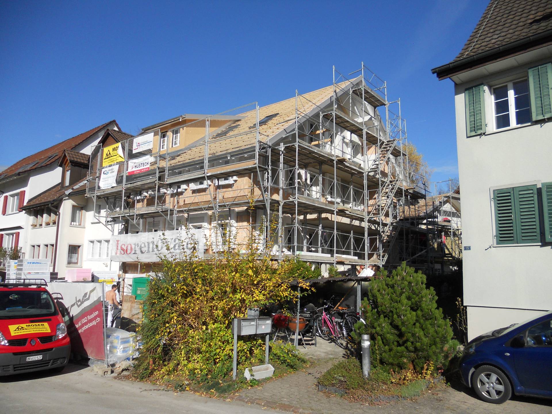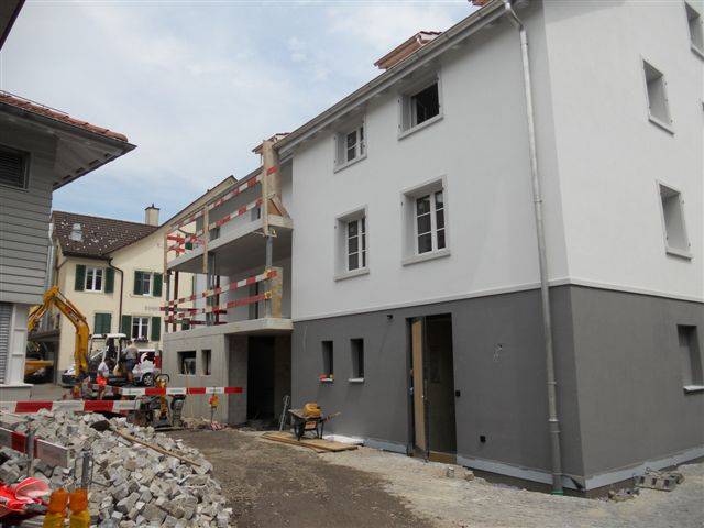 Für die Bauherrschaft erstellten wir an Steller der bestehenden Altbauliegenschaft 10 neue Wohnungen (2 1/2 bis 4 1/2 Zimmerwohnungen) sowie ein Gewerberaum. Das bestehende Gebäude wurde abgerissen und es enstand an gleicher Stelle ein Neubau mit dem Minergie-Standard.