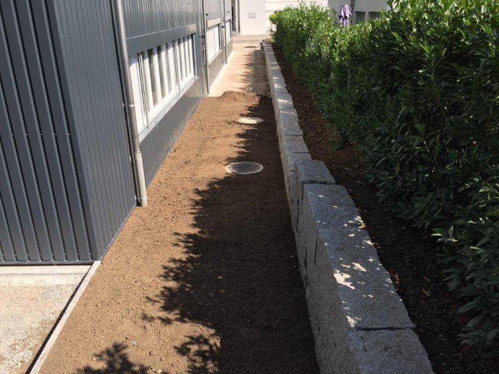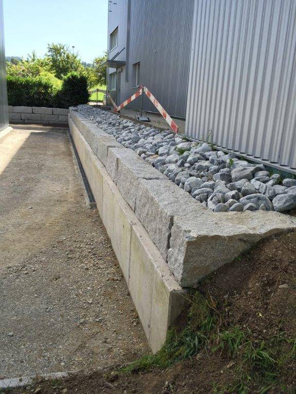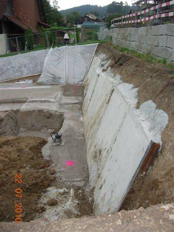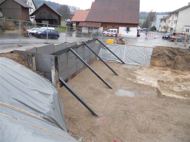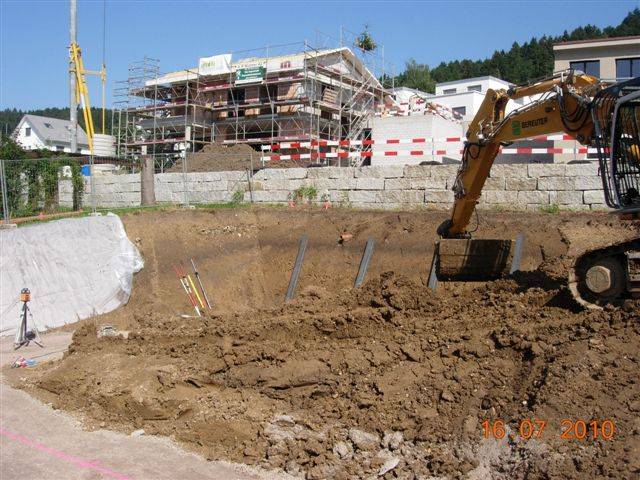 - Zeile3 Beschreibung: Zur Sicherung des Nachbargrundstückes musste eine Baumeisterrühlwand erstellt werden. Später wurde auch bei starkem Schneetreiben eifrig gearbeitet.