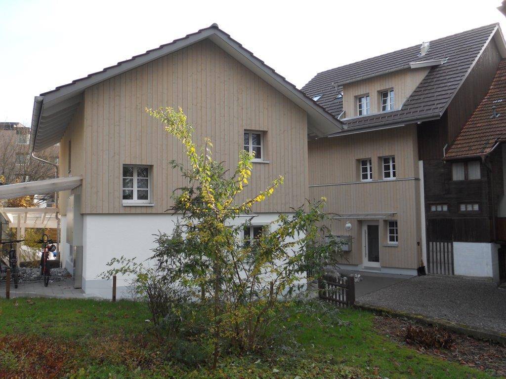 Die bestehenden Bauten wurden abgerissen und neu aufgebaut. Im neuen MFH enstanden 4 Wohnungen (3 Mal 3 1/2 und 1 Mal 2 1/2 Zimmerwohungen). Im neu zu Wohnzwecken umfunktionierten Schopf wurde ein schmuckes "Stöckli" (2 1/2 Zimmerwohnung) errichtet.