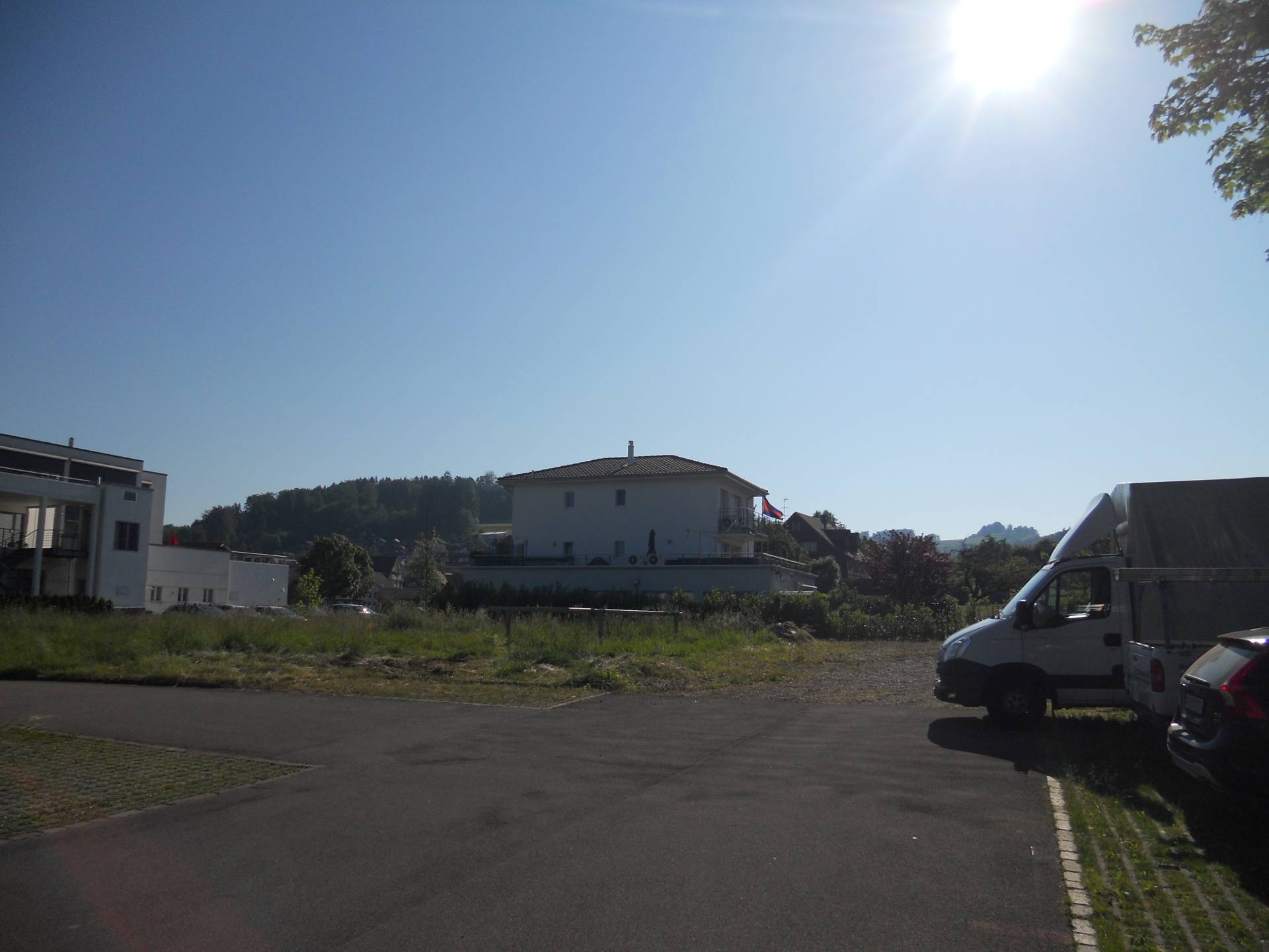 Auf einer grünen Wiese, die Parzelle war umgeben von der SBB (Bahnhof Kreuzlingen), der Kantonsstrasse, einer Fussgängerunterführung einem Neubau Hochhaus und der Venenklinik.