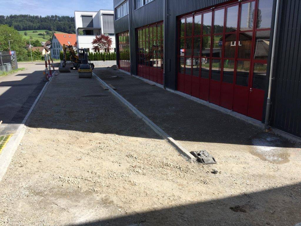- Zeile4 Beschreibung: Vor der Gewerbehalle wurde durch die Zimmerei ein Holzlager erstellt. Zudem wurde ein Treppenhaus angebaut, welches einem direkt zu den neuen Büroräumlichkeiten im Dachgeschoss bringt.