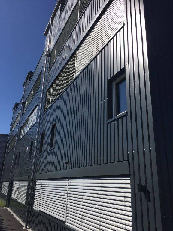 - Zeile1 Beschreibung: Wo früher eine grüne Wiese war, entstand ein Gewerbebau mit Wohnungen.